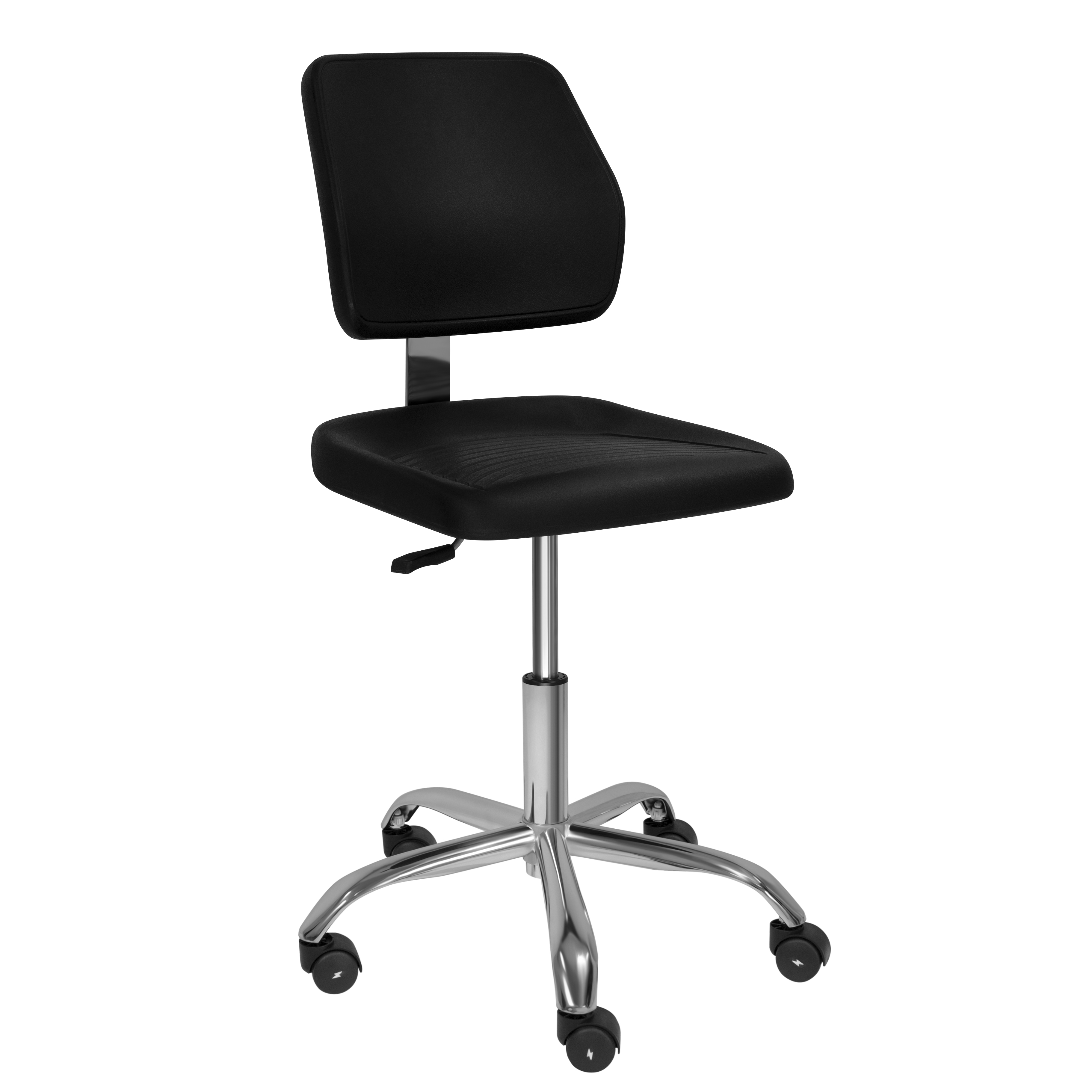 Стул СПА-4 ESD поставляется в комплекте с антистатическими колесами, которые имеют специальную маркировку в виде молнии желтого цвета, обозначающую защиту от задержки (скопления) на нем электростатического разряда.