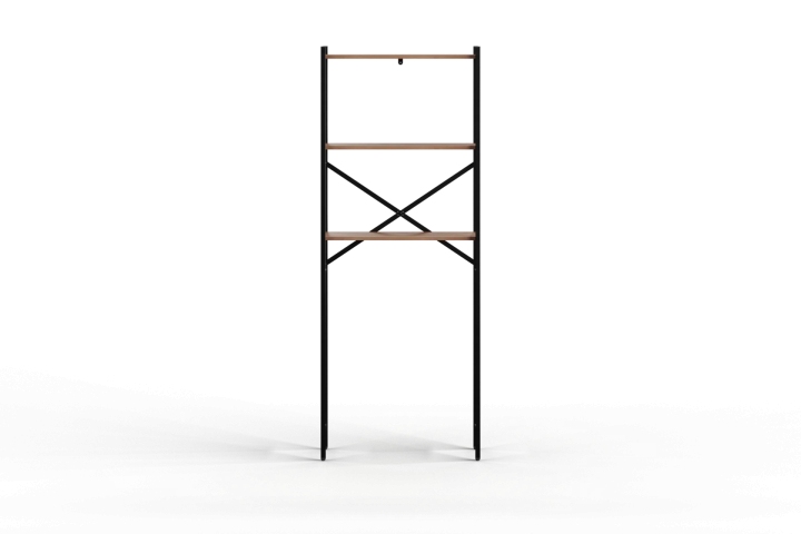 Стеллаж имеет высоту 180 см, ширину 69 см и глубину 25 см, что позволяет ему гармонично вписаться в интерьер любой ванной комнаты. Он представлен в трех цветах покрытия каркаса – черном, белом и золотом, а цвета полок могут быть коричневыми, патиновыми или эвок. Это дает возможность подобрать стеллаж под любой дизайн помещения.