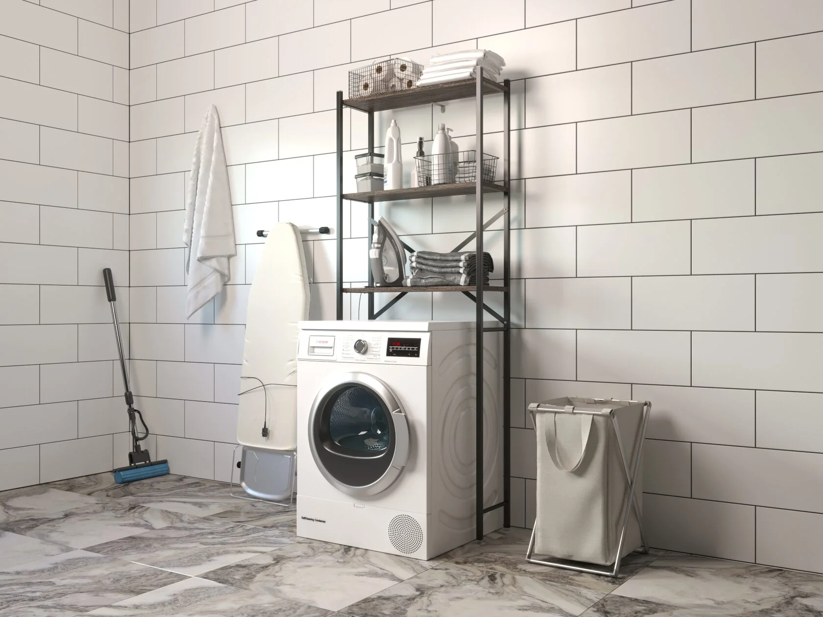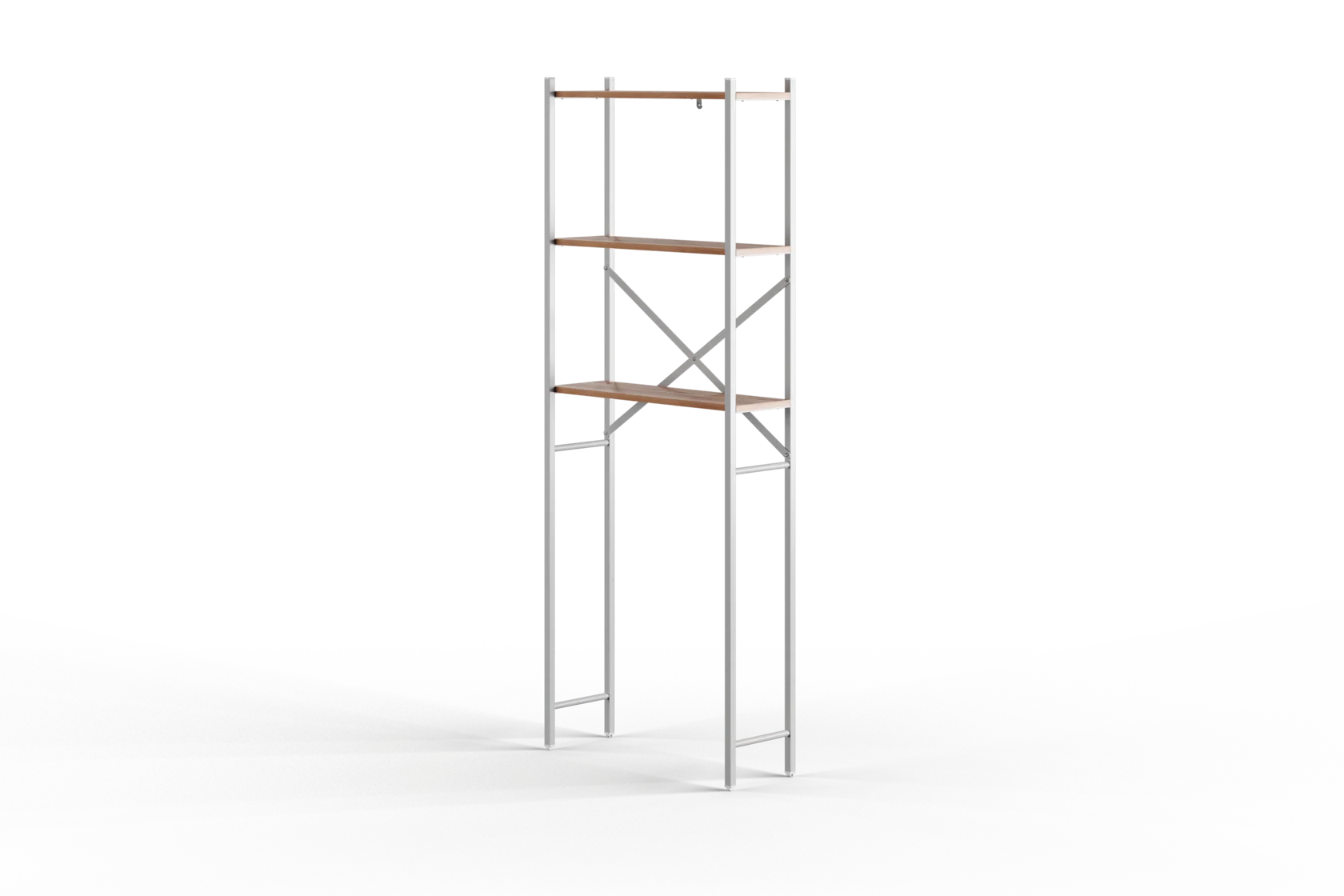 Особенностью данного стеллажа является возможность его установки над стиральной машиной или унитазом. Это не только экономит пространство, но и обеспечивает легкий доступ к вещам, хранящимся на полках. Кроме того, стеллаж оснащен регулируемыми опорами, которые защищают напольное покрытие от повреждений.