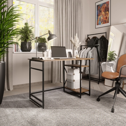 Письменный стол GUTTA — это стильное решение для вашего рабочего пространства. Он выполнен в стиле лофт и имеет размеры 76х111х68 см, что позволяет комфортно разместить все необходимые вещи. Каркас стола изготовлен из качественной конструкционной стали и окрашен в черный или белый цвет. В комплект входят две полки из ЛДСП, которые могут быть коричневого, патинированного или эвок цвета.