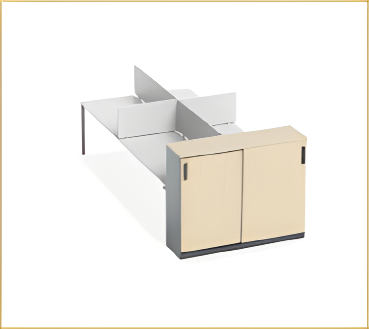 Устанавливается с торца бенч системы спаренной из столов глубиной 800 мм, приставка имеет ширину 1600 мм. Двери сдвижные, экономят пространство. Внутри полки. Сверху топ, выполняет роль столешницы. Приставка устанавливается на металлический цоколь с регулируемыми опорами, можно выровнять изделие на неровном полу. Корпус и двери выполнены из ЛДСП толщиной 16 мм, топ из ЛДСП толщиной 25 мм. Полки металлические. Ручки эргономичные, металлические.