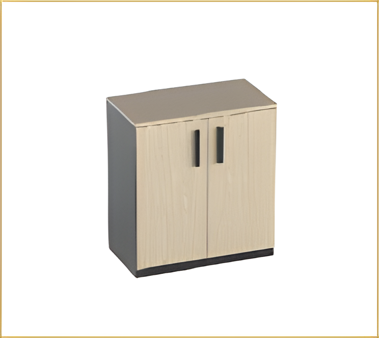 Шкаф малый, с одной полкой и распашными дверьми, сверху топ. Корпус шкафа и двери выполнены из ЛДСП толщиной 16 мм, топ выполнен из ЛДСП толщиной 25 мм. Полка металлическая. Шкаф устанавливается на металлический цоколь с регулируемыми опорами, можно выровнять изделие на неровном полу. Ручки эргономичные, металлические.