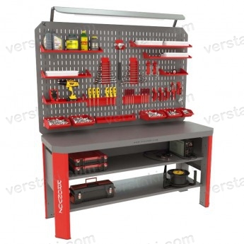 Слесарный верстак с двойным экраном Гефест-ВС-000-ЭДО используется для установки на производстве при оборудовании пространства для работы наладчика. Разрабатывался с учетом возможных нагрузок при выполнении операций по обтачке, подгонке, шлифовке деталей различного размера, сборке-разборке оборудования во время ремонтных работ.