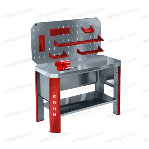 Металлический верстак с тисками ГЕФЕСТ-ВС-00-ЭП-Т2 наиболее часто используется для организации рабочего места наладчика. Продуманная конструкция призвана систематизировать хранение инструмента, что способствует более продуктивной работе по ремонту станков, механизмов, шлифовке, обтачке деталей и подготовке их к установке.