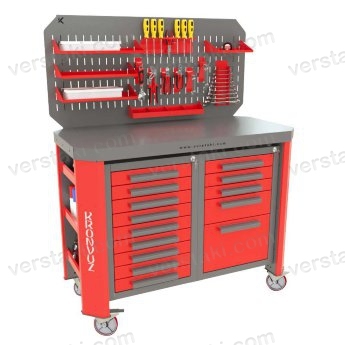 Стол-верстак на колесах Гефест-ВС-95-ЭП-К является готовым решением оснащения рабочего пространства слесаря-ремонтника. При разработке учитывались возможные повышенные нагрузки, поэтому конструкция отличается высокой прочностью и надежностью, что в сочетании с продуманной системой хранения, способствует более эффективному и продуктивному рабочему процессу.
