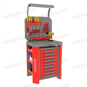 Маленький верстак ГЕФЕСТ-ВС-9 разрабатывался для организации рабочего пространства мастера участка, компактный размер в сочетании с функциональностью позволяет эффективно использовать его во время работы.