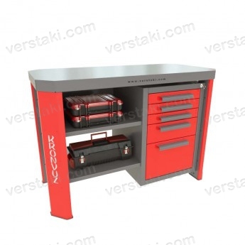 Железный верстак Гефест-ВС-05 значительно упрощает хранение инструмента на производственном участке при организации рабочего места мастера. Использование качественных материалов, многослойность столешницы, сочетающей в себе металл и фанеру, делает конструкцию максимально прочной и позволяет выдерживать равномерно распределенную нагрузку до 6000 кг.