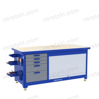 Наименование характеристики, ед. измерения Значение Материал столешницы Фанера Толщина столешницы, мм 24 Материал составных деталей Сталь Толщина составных деталей стола, мм 1-3 Основной цвет изделия RAL 5005 Дополнительный цвет элементов RAL 7012 Высота рабочей поверхности над уровнем пола, мм 900 Количество ящиков с дверцей, шт 0 Количество выдвижных ящиков, шт 5 Нагрузка Максимальная распределенная нагрузка на изделие, кг 1500 Распределенная вертикальная нагрузка до 6000 кг Распределенная горизонтальная нагрузка до 4000 кг Габаритные размеры Верстак без экрана (в упаковке), ДхШхВ мм 2000х875х900 (2300х1200х1200) Верстак с экраном (в упаковке), ДхШхВ мм 2000х875х1600 (2300х1200х2100) Верстак со шкафом (в упаковке), ДхШхВ мм 2000х875х2060 (2300х1200х2300) Размер рабочей поверхности, ДхШ, мм 200х875 Размер экрана, ДхШхВ мм 2000х70х630 Размер навесного шкафа, ДхШхВ мм 2000х250х750 Размер маленького выдвижного ящика ДхШхВ, мм 565х505х85 Размер среднего выдвижного ящика ДхШхВ, мм 565х505х170 Размер большого выдвижного ящика ДхШхВ, мм 565х505х255 Внутренние размеры выдвижных ящиков ДхШ, мм 545х460 Масса Вес верстака, кг 190 Вес верстака со шкафом, кг 250 Вес верстака с экраном, кг 210