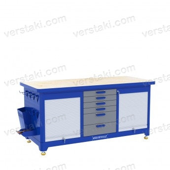 Наименование характеристики, ед. измерения Значение Материал столешницы Фанера Толщина столешницы, мм 24 Материал составных деталей Сталь Толщина составных деталей стола, мм 1-3 Основной цвет изделия RAL 5005 Дополнительный цвет элементов RAL 7012 Высота рабочей поверхности над уровнем пола, мм 900 Количество ящиков с дверцей, шт 0 Количество выдвижных ящиков, шт 6 Нагрузка Распределенная вертикальная нагрузка до 6000 кг Распределенная горизонтальная нагрузка до 4000 кг Максимальная нагрузка на выдвижной ящик, кг 50 Габаритные размеры Верстак без экрана (в упаковке), ДхШхВ мм 2000х875х900 (2300х1200х1200) Верстак с экраном (в упаковке), ДхШхВ мм 2000х875х1600 (2300х1200х2100) Верстак со шкафом (в упаковке), ДхШхВ мм 2000х875х2060 (2300х1200х2300) Размер рабочей поверхности, ДхШ, мм 200х875 Размер экрана, ДхШхВ мм 2000х70х630 Размер навесного шкафа, ДхШхВ мм 2000х250х750 Размер маленького выдвижного ящика ДхШхВ, мм 565х505х85 Размер среднего выдвижного ящика ДхШхВ, мм 565х505х170 Размер большого выдвижного ящика ДхШхВ, мм 565х505х255 Внутренние размеры выдвижных ящиков ДхШ, мм 545х460 Масса Вес верстака, кг 190 Вес верстака со шкафом, кг 250 Вес верстака с экраном, кг 210