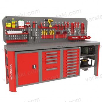 Металлический верстак под станок Гефест-ВС-1590 имеет основательную конструкцию, при разработке учитывалась прочность изделия, надежность и долговечность. Оборудование рабочего места специалиста, выполняющего слесарно-ремонтные работы, подразумевает использование производственной мебели, рассчитанной на внешние воздействия, в том числе динамические, ударные.