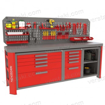 Наименование характеристики, ед. измерения Значение Толщина столешницы в стандартном исполнении, мм 3 Возможная толщина столешницы, мм 5,8,10 Толщина составных деталей верстака, мм 1-2 Распределенная вертикальная нагрузка до 6000 кг Распределенная горизонтальная нагрузка до 4000 кг Основной цвет изделия RAL 7012 Дополнительный цвет элементов RAL 3002 Масса верстака Вес изделия без экрана (в упаковке), кг 180 (225) Вес изделия с экраном (в упаковке), кг 210 (255) Габаритные размеры Верстак без экрана (в упаковке), ДхШхВ мм 2240х600х850 (2550х900х1150) Верстак с экраном (в упаковке), ДхШхВ мм 2240х630х1445 (2550х950х1250) Размер рабочей поверхности стола (ДхШ), мм 2240х600 Размер экрана (ДхВ), мм 2240х650 Высота рабочей поверхности над уровнем пола, мм 850 Характеристики дополнительных элементов Напряжение сети, В/Гц 220/50 (380/50) Количество розеток, шт. 5 Максимальная нагрузка на выдвижной ящик, кг 50